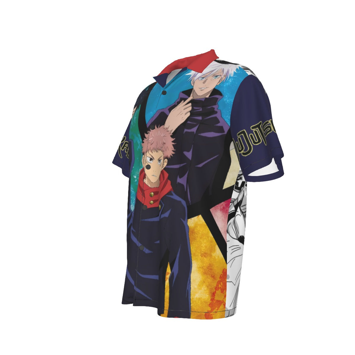 This all-over print Hawaiian shirt draws inspiration from the intense world of Jujutsu Kaisen, where powerful sorcerers and terrifying curses collide in a fight for control. Swirling cursed energy, dark supernatural patterns, and explosive anime aesthetics create a design that feels like stepping directly inside a domain where every move matters.